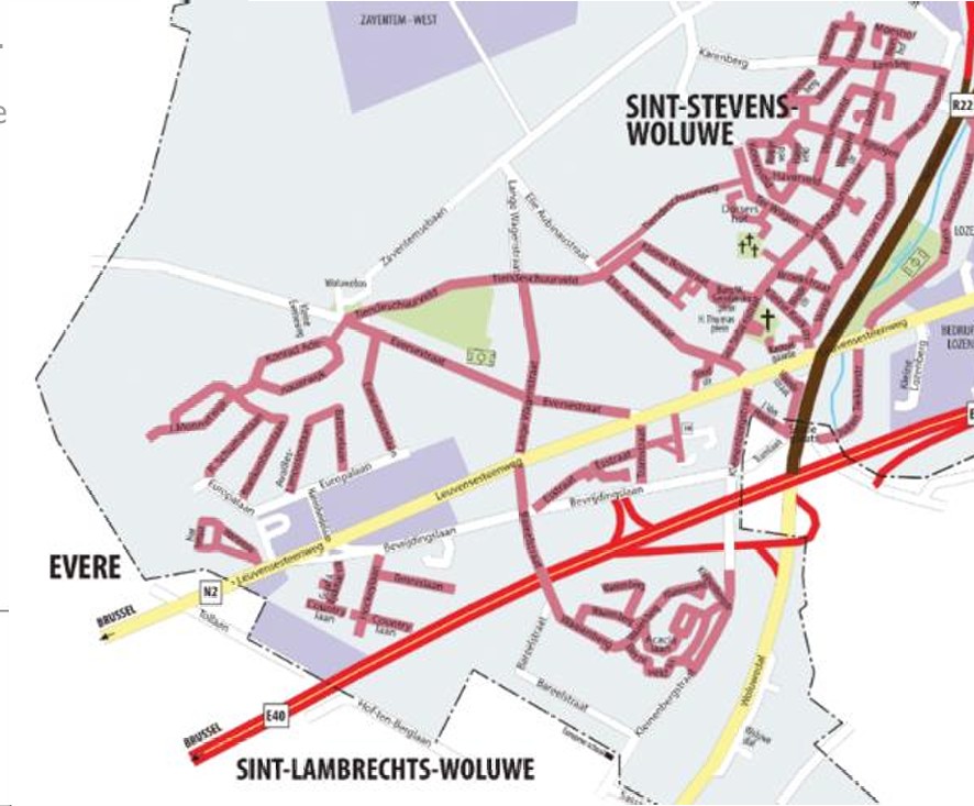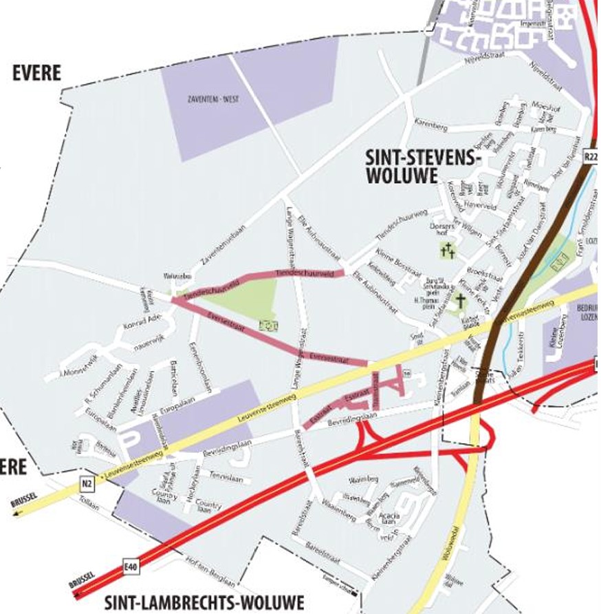 Ci-dessous proposition de Zaventem aan Zet 2021 : quelques rues en rouge à 30km/h